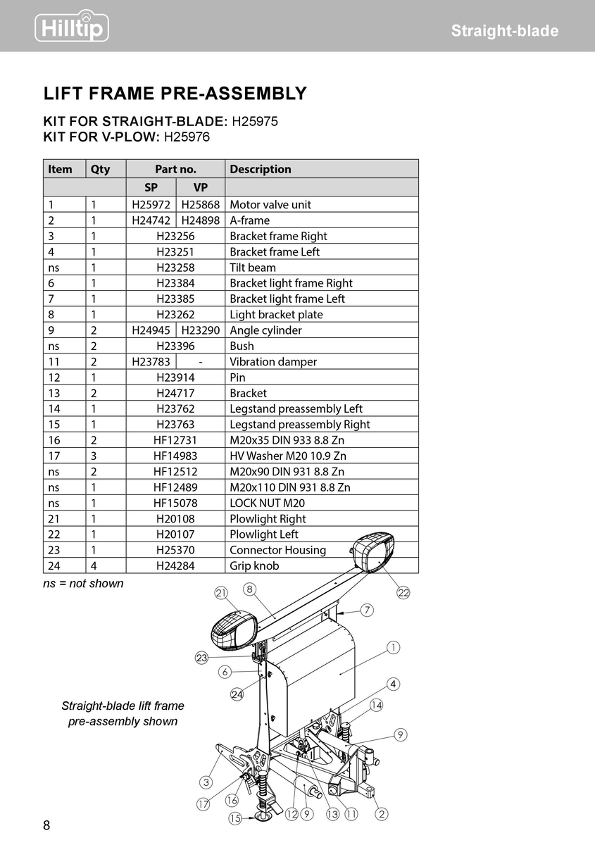 Pos.(1-24) Aufzugrahmen Vormontage-Kit/ Lift frame preassembly